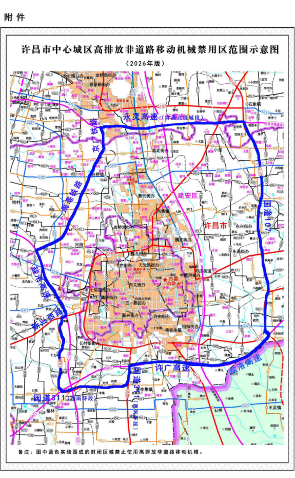 附件:许昌市中心城区高排放非道路移动机械禁用区范围示意图(2026年版)